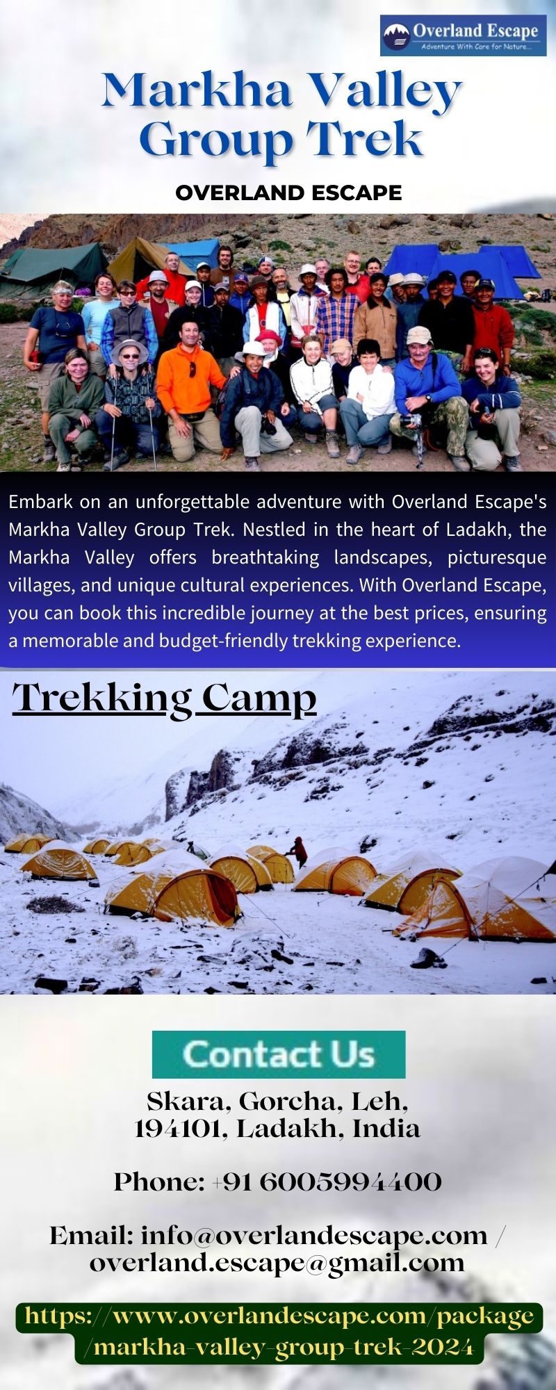 Descripción Embark on an unforgettable adventure with Overland Escape's Markha Valley Group Trek. Nestled in the heart of Ladakh, the Markha Valley offers breathtaking landscapes, picturesque villages, and unique cultural experiences. With Overland Escape, you can book this incredible journey at the best prices, ensuring a memorable and budget-friendly trekking experience. Learn more at https://www.overlan...