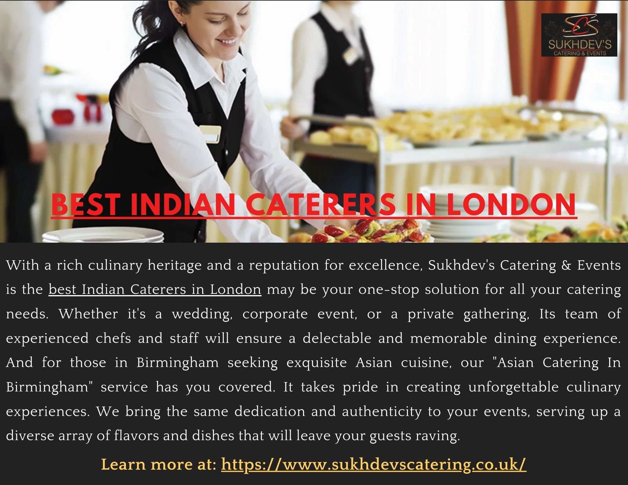 | Descripción | Sukhdev's Catering & Events stands as one of the Best Indian Caterers in London, renowned for authentic and flavorful Indian cuisine that brings elegance to every event. Offering a wide range of Indian Catering Services, Sukhdev's specializes in curating customized menus that blend traditional and contemporary flavors, ensuring every dish delights guests with exceptional taste and presentation.... |