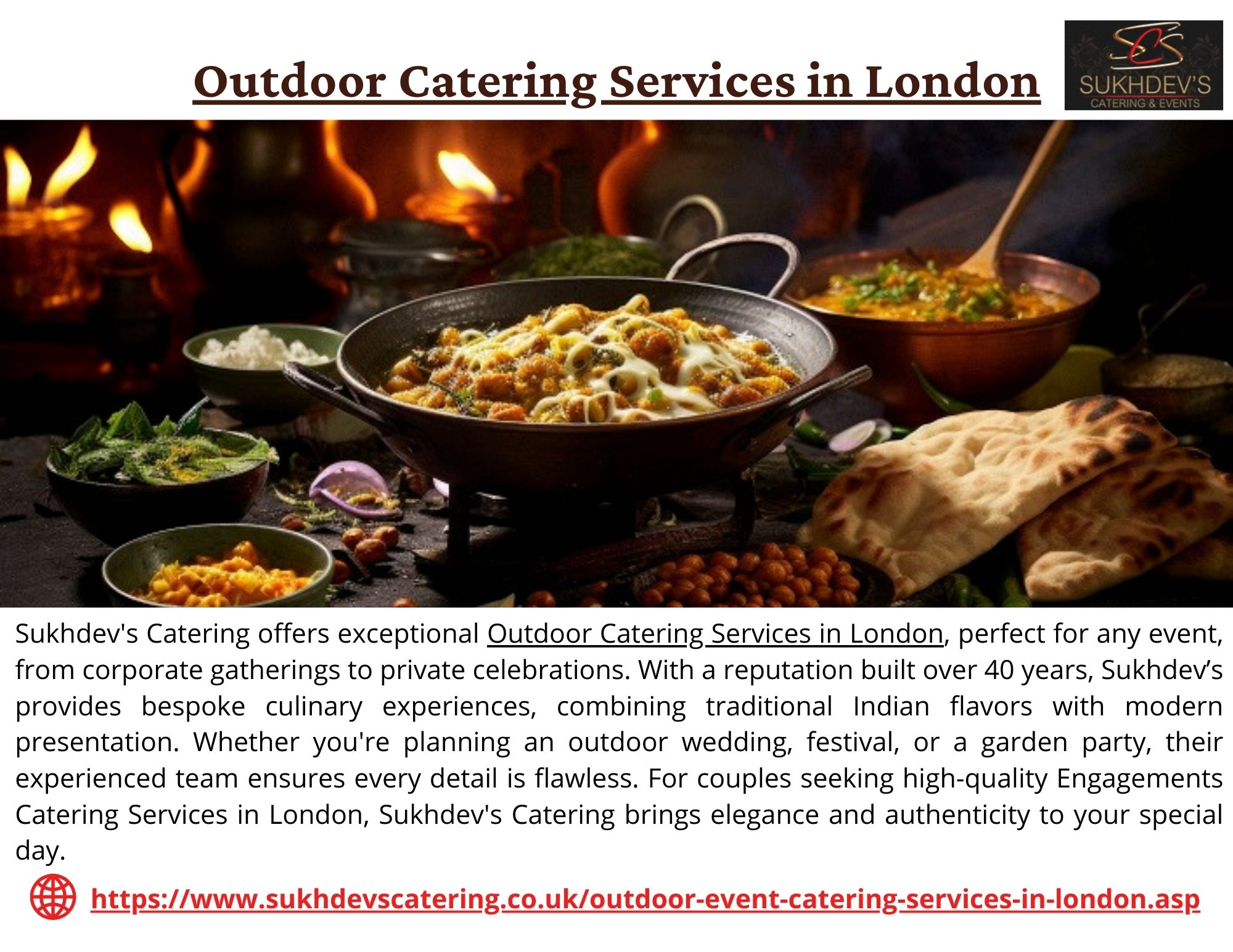 | Descripción | Sukhdev's Catering offers exceptional Outdoor Catering Services in London, perfect for any event, from corporate gatherings to private celebrations. With a reputation built over 40 years, Sukhdev’s provides bespoke culinary experiences, combining traditional Indian flavors with modern presentation. For couples seeking high-quality Engagements Catering Services in London, Sukhdev's Catering brin... |