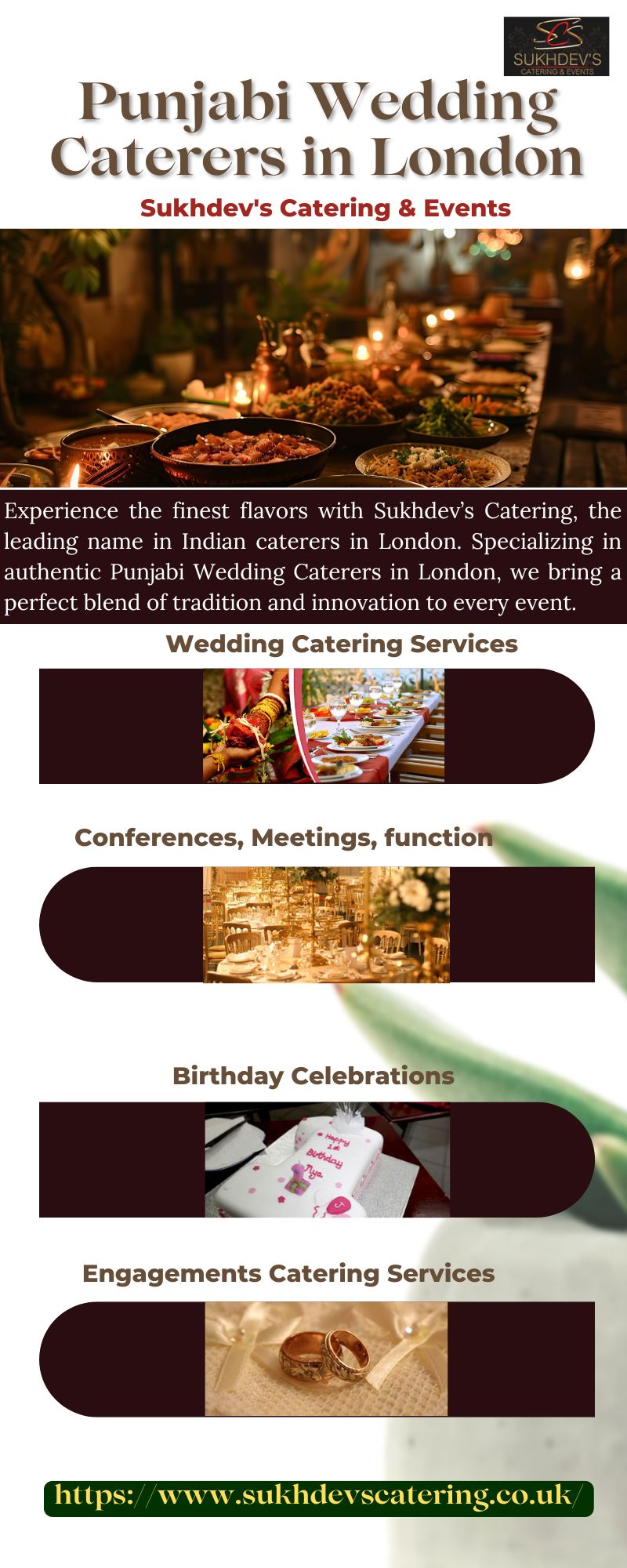 | Descripción | Experience the finest flavors with Sukhdev’s Catering, the leading name in Punjabi Wedding Caterers in London. Let Sukhdev’s Catering elevate your special occasions with unmatched culinary expertise. From lavish weddings to corporate gatherings, our exquisite menus and exceptional service leave lasting impressions. To explore our menus and services today at https://www.sukhdevscatering.co.uk/ |