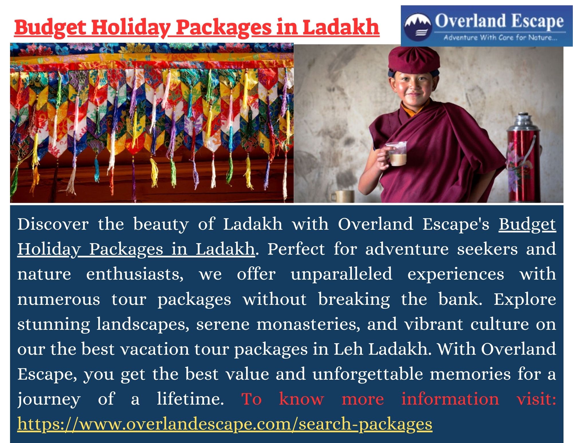 | Descripción | Discover the beauty of Ladakh with Overland Escape's Budget Holiday Packages in Ladakh. Perfect for adventure seekers and nature enthusiasts, we offer unparalleled experiences with numerous tour packages without breaking the bank. Explore stunning landscapes, serene monasteries, and vibrant culture on our best vacation tour packages in Leh Ladakh. To know more information visit https://www.over... |