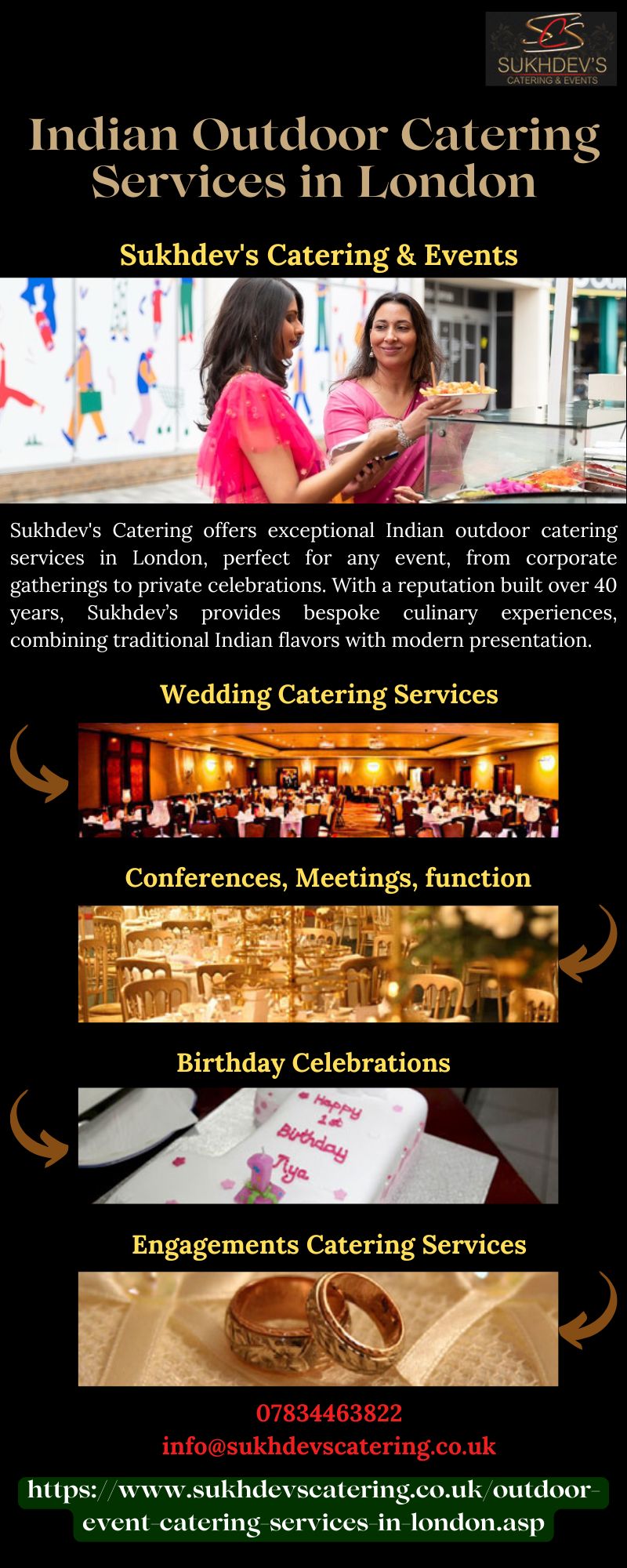 | Descripción | Sukhdev's Catering offers exceptional Indian outdoor catering services in London, perfect for any event, from corporate gatherings to private celebrations. With a reputation built over 40 years, Sukhdev’s provides bespoke culinary experiences, combining traditional Indian flavors with modern presentation. For couples seeking high-quality Engagements Catering Services in London, Sukhdev's Cateri... |