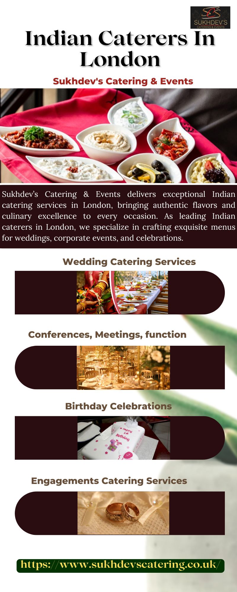 Descripción Sukhdev’s Catering & Events delivers exceptional Indian catering services in London, bringing authentic flavors and culinary excellence to every occasion. As leading Indian caterers in London, we specialize in crafting exquisite menus for weddings, corporate events, and celebrations. With decades of experience, impeccable service, and a passion for Indian cuisine, Sukhdev’s Catering guarantees ...