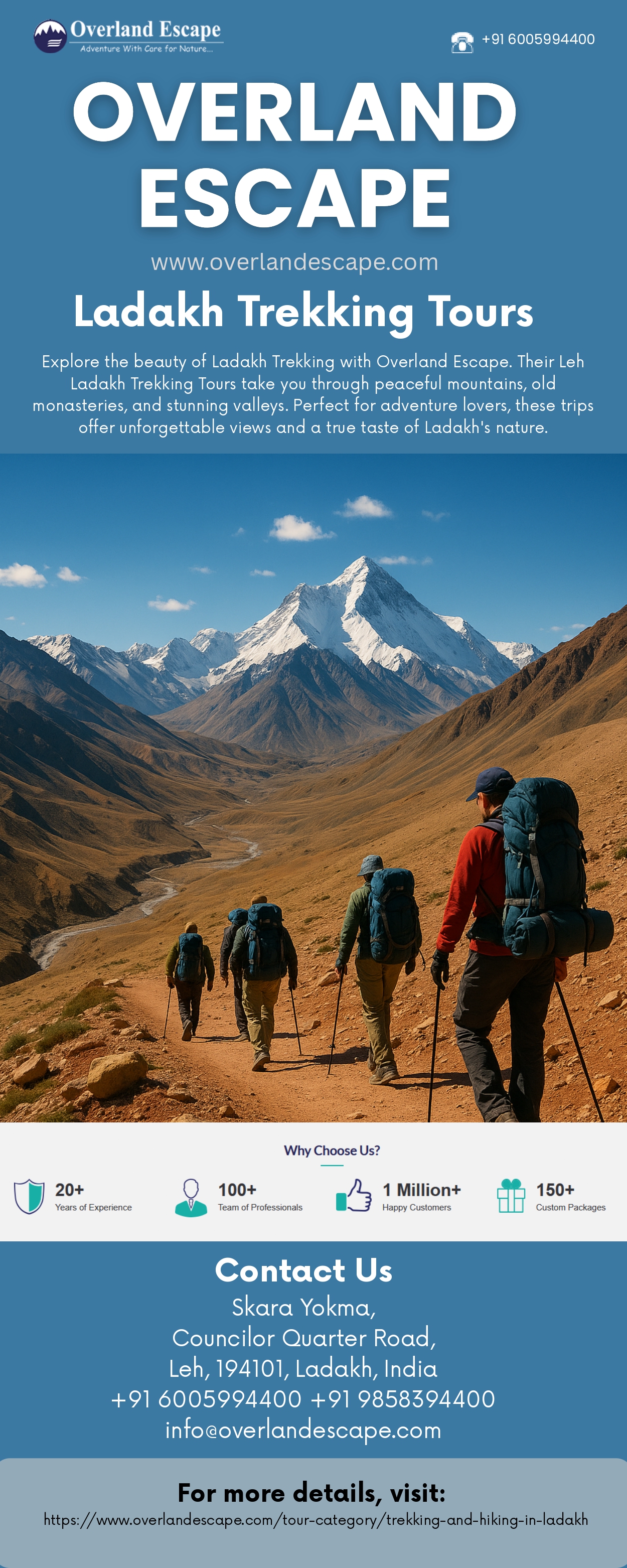 | Descripción | Overland Escape offers the best experience of Ladakh Trekking. Explore high mountains, beautiful valleys, and peaceful villages with their Leh Ladakh Trekking Tours. Perfect for adventure lovers, these tours show you the true beauty of Ladakh in a simple, natural way. For more details, visit: https://www.overlandescape.com/tour-category/trekking-and-hiking-in-ladakh |
