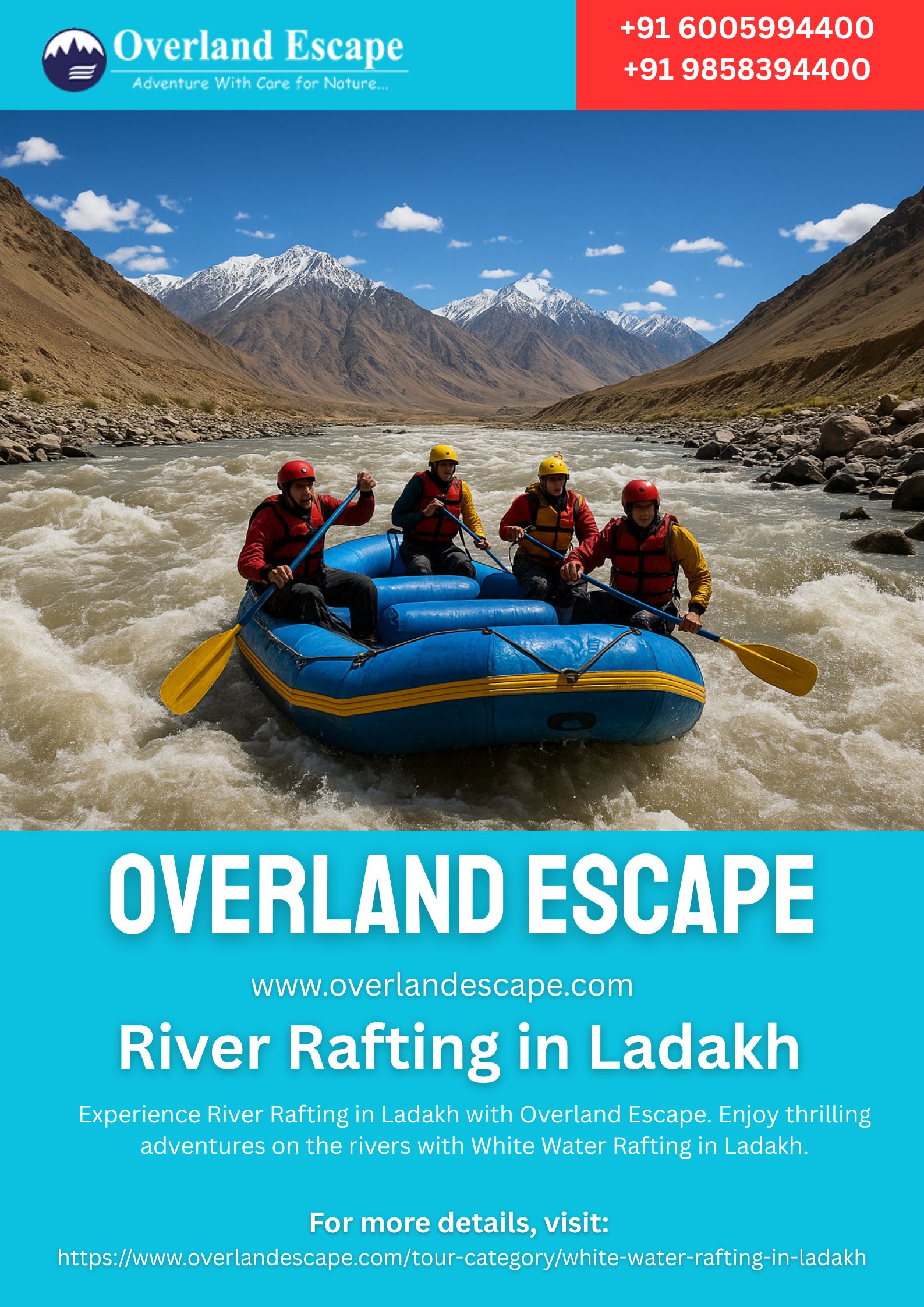 Descripción Enjoy River Rafting in Ladakh with Overland Escape. Feel the thrill of White Water Rafting in Ladakh on beautiful rivers. Safe, fun, and exciting adventures await everyone seeking nature and adrenaline together. For more details, visit: https://www.overlandescape.com/tour-category/white-water-rafting-in-ladakh