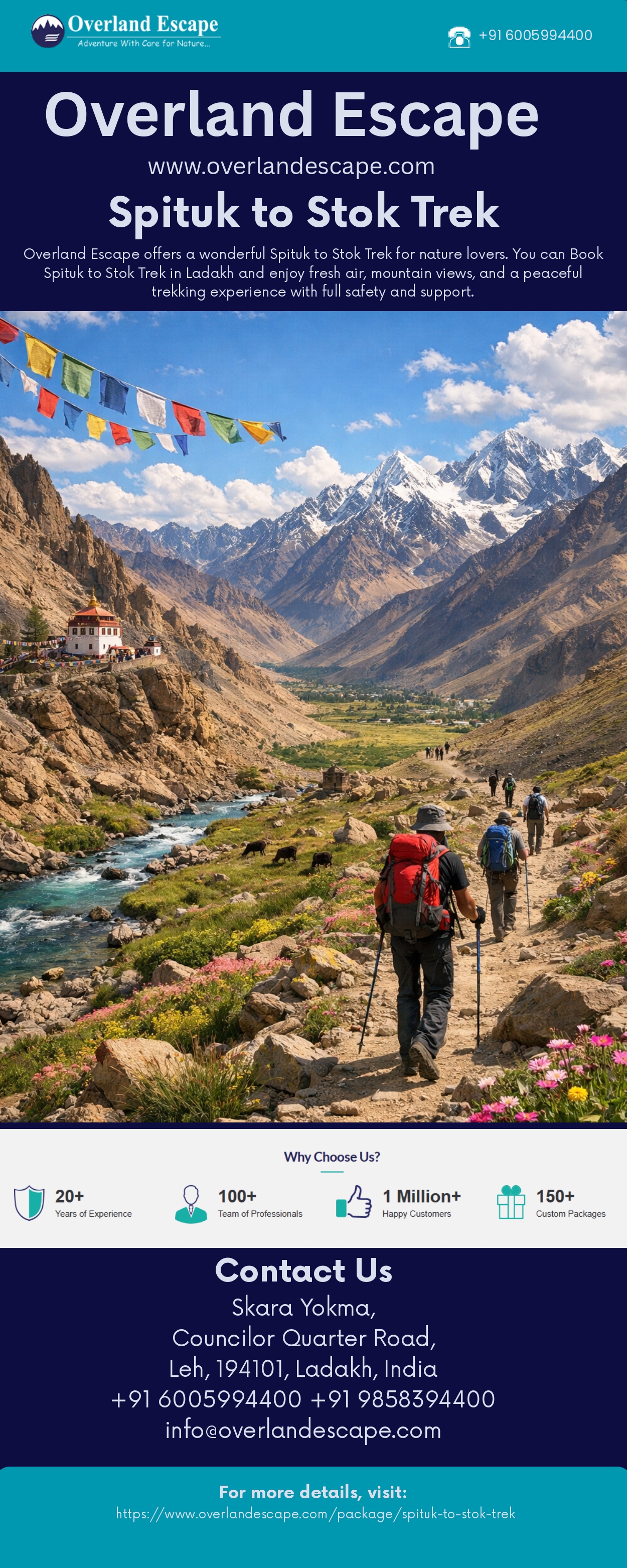| Descripción | Overland Escape offers the best Spituk to Stok Trek for adventure lovers. You can easily Book Spituk to Stok Trek in Ladakh and enjoy beautiful views, simple trails, and a safe, memorable trekking experience. For more details, visit: https://www.overlandescape.com/package/spituk-to-stok-trek |